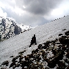 On snow patches during trekking